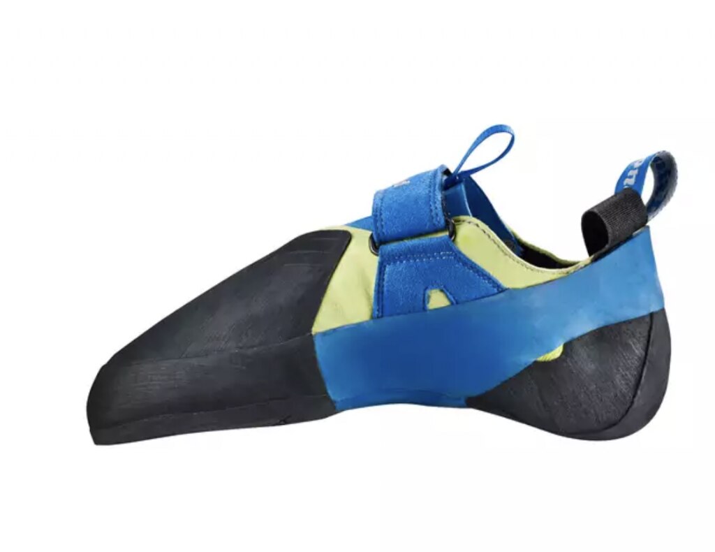 Scarpetta tecnica da palestra e falesia, leggermente asimmetrica con chiusura unica a velcro. Tomaia in microfibra ultra avvolgente, suola in Vibram XS GRIP.