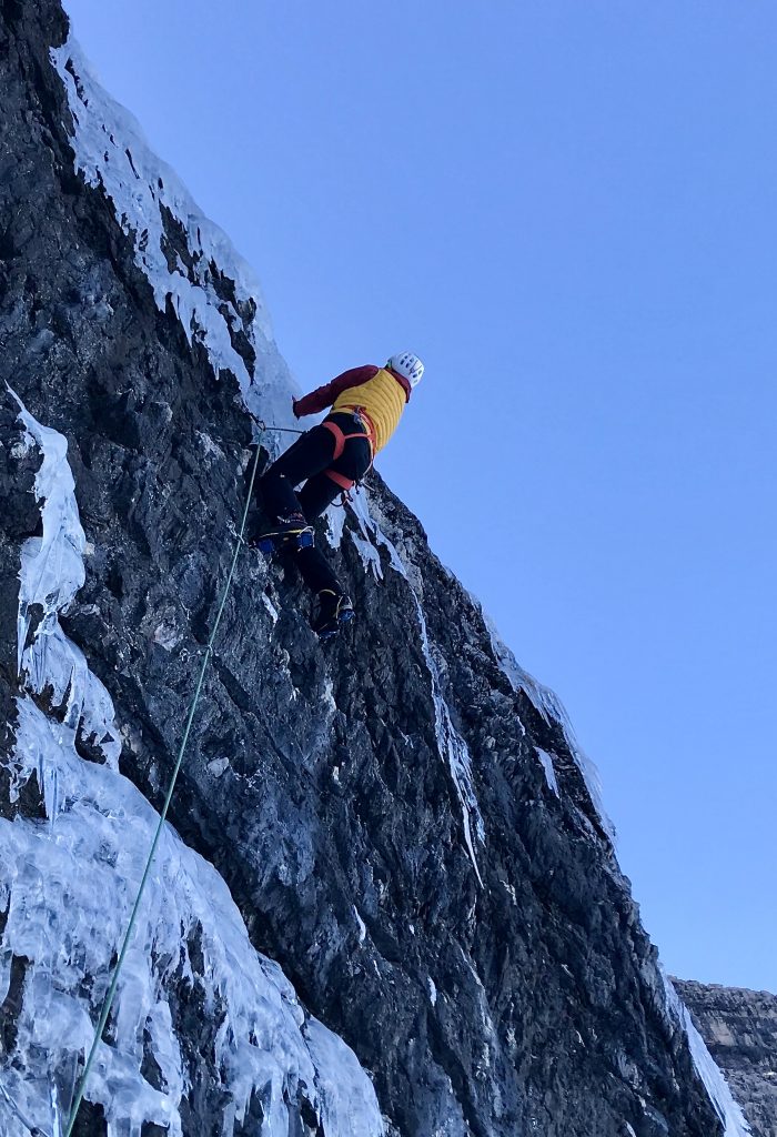 due giorni scalando cascate e monotiri di misto di ghiaccio in quota