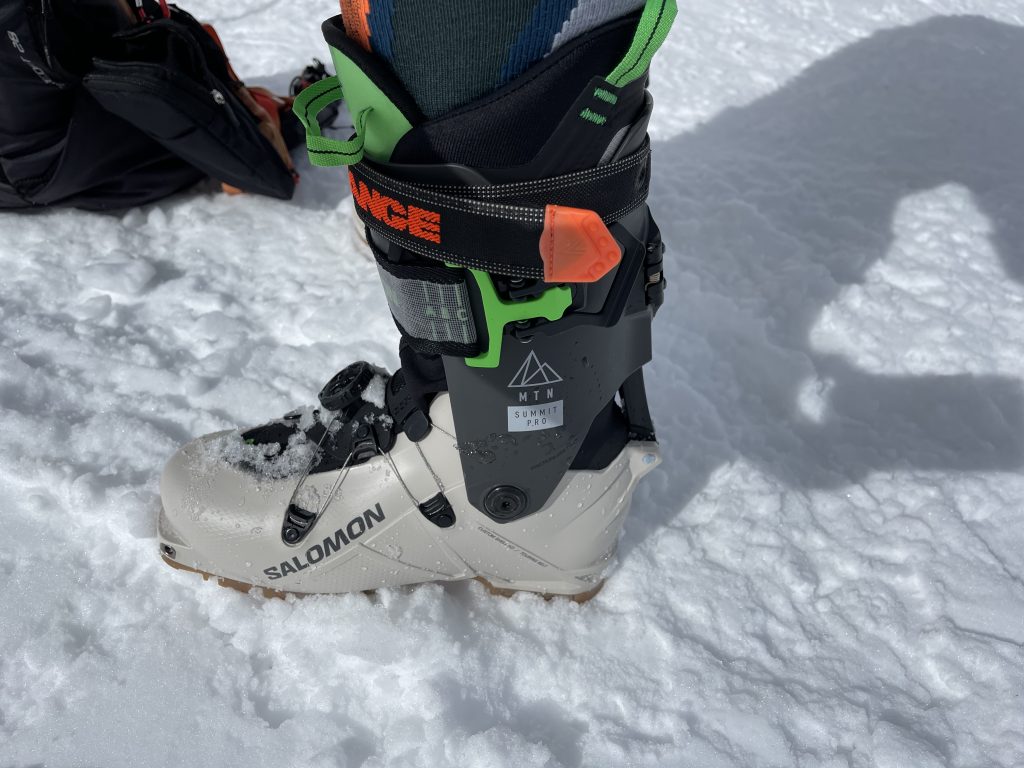 Il modello MTN Summit Pro di Salomon con chiusura Boa si colloca a livello intermedio nella gamma MTN Summit, tra il top di gamma S/LAB MTN Summit ed il modello di accesso, MTN Summit Pure. Questa famiglia di scarponi è indicata allo ski touring, anche per coloro che amano affrontare la salita a ritmo piuttosto sostenuto, grazie al peso ridotto (1.120 gr. effettivo in tg 25) ed all’ampio grado di articolazione del gambetto (75 gradi dichiarati dalla casa). Grazie alla tecnologia Custom Shell HD lo scarpone può essere customizzato sull’anatomia dello sciatore, con una veloce personalizzazione presso negozianti specializzati. Il test è stato effettuato sullo scarpone nuovo senza intervento di personalizzazione, per cui sono da aspettarsi ulteriori miglioramenti nella calzata dopo aver termoformato la scarpa.