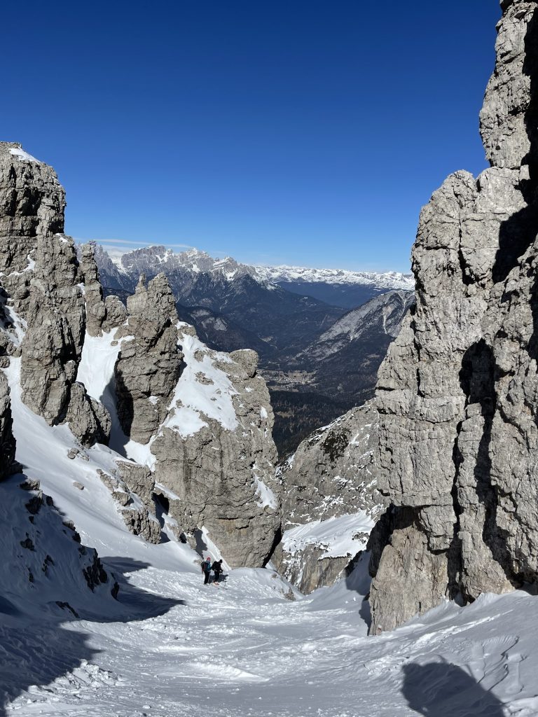 Lagorai, Dolomiti del Cadore e Dolomiti Friulane. Dislivello 1000 – 1500 metri. Alcuni tratti di salita a piedi per raggiungere le cime o le forcelle. Pendenza massima sciata 45 gradi.