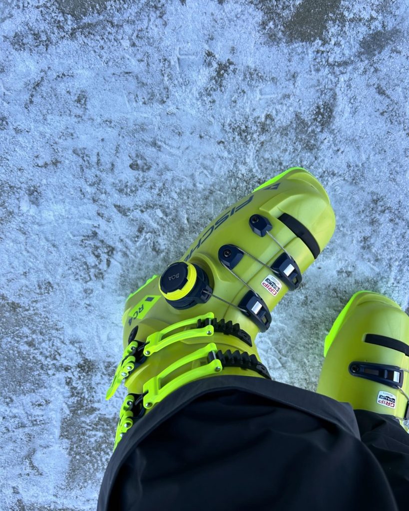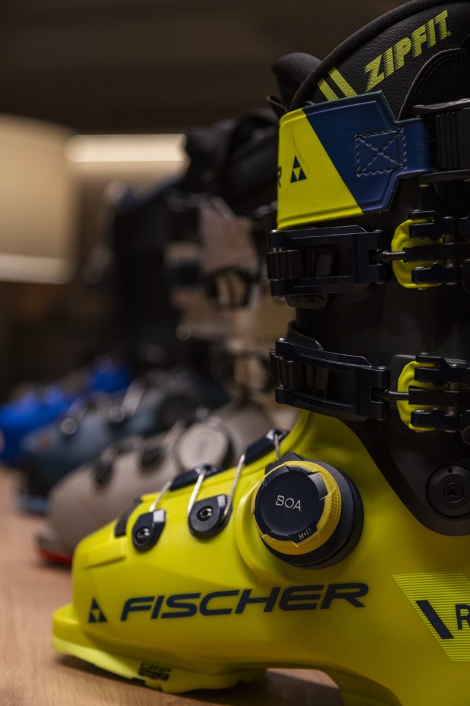 La nostra prova dello scarpone di un solo giorno non ci ha permesso di effettuare una recensione molto approfondita del prodotto. In effetti la nostra curiosità era soprattutto per il sistema BOA che per la prima volta nella stagione 2023-24 è stato inserito anche in alcuni modelli di scarponi da sci di pista come questo di Fischer. Nel complesso lo scarpone ci è sembrato molto ben strutturato e rigido soprattutto nella parte superiore del gambetto mentre la parte sulla pianta del piede ci ha dato l’idea di essere più morbida e avvolgente. Il sistema di chiusura Boa, con la rotella e i cavi di dimensioni più grandi rispetto al solito per una maggiore resistenza al carico, dona una sensazione di confort e avvolgimento maggiore in confronto alla pressione verso il basso esercitata dai normali ganci di chiusura che in effetti costringono di più la pianta del piede che risulta anche più ferma. Fluida e facile la calzata sia in entrata che in uscita. A fine giornata ho avvertito un minimo di pressione sui malleoli mediali. La rotella con i guanti da sci imbottiti non è di facilissimo utilizzo ed è sicuramente meglio toglierli per poter stringere con più forza fino in fondo.