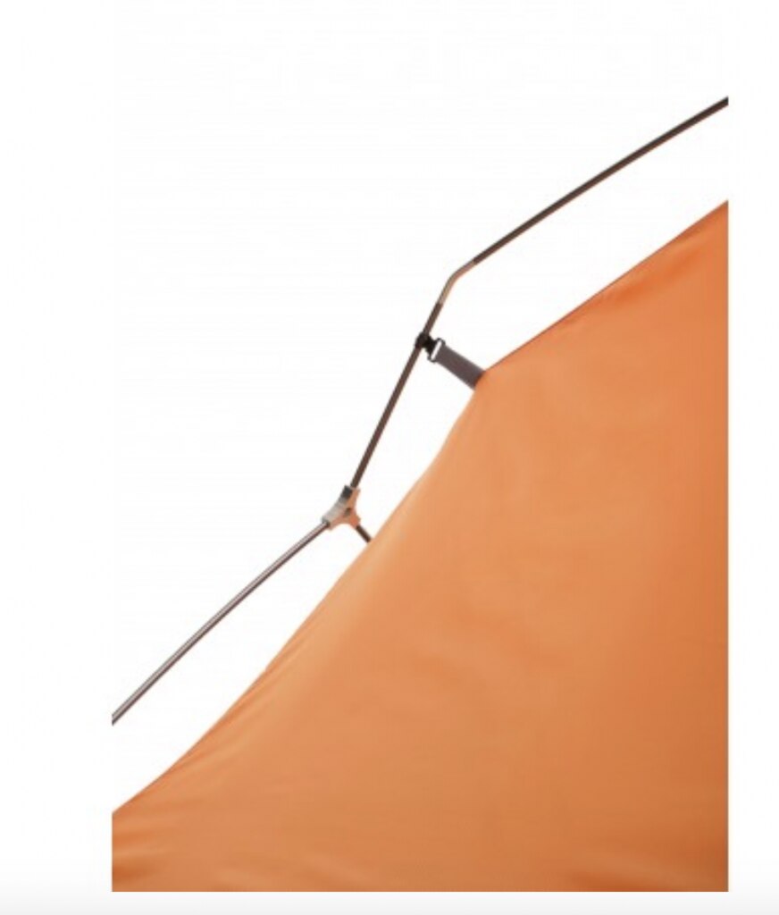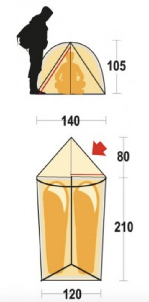 Tenda 4 stagioni di peso ridotto che grazie al telo esterno con falde a terra ben si comporta anche in spedizioni in alta montagna, sulla neve, per escursioni di più giorni e cicloturismo. Peso ridotto (peso minimo 2,4 kg) in considerazione dello spazio interno (140x290x105 cm). E’ stata la mia “casa” per 13 giorni su 15 di spedizione sia durante il percorso in bici che durante la permanenza ai piedi della montagna. Di facile montaggio e smontaggio anche se si è da soli e in condizioni di vento. Avendola utilizzata da solo ho avuto a disposizione spazio in più per lo zaino e le borse della bici. Il vento teso da metà a fine giornata mi ha obbligato cucinare spesso all’interno. In condizioni di vento forte va montata con la parte posteriore puntata alla direzione del vento. Se viene montata correttamente e ben tirata, i teli non sventolano e non disturbano il sonno. I tiranti esterni sono 5, tutti riflettenti: 2 anteriori, 2 laterali, 1 posteriore. Il doppio telo, quello esterno impermeabile, consente un buon isolamento termico, non ho riscontrato eccessivi problemi di condensa anche durante alcune notti con temperatura esterna intorno ai -10°. Dotata di tasche laterali, di 2 finestrelle richiudibili sull’apertura e sul posteriore e di una finestra trasparente frontale. Avendo una sola entrata, in caso di sole e caldo mi è risultato difficile creare una corrente interna e a metà giornata la temperatura diventava molto alta.
