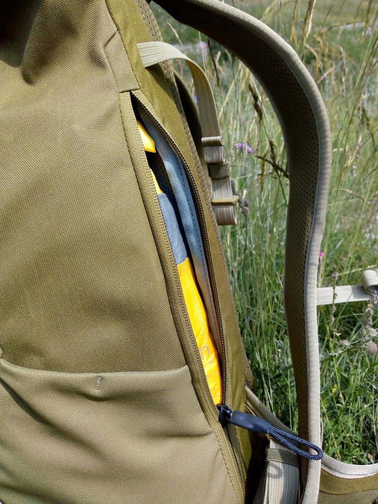 - Molto comode le due tasche laterali portaborracce e la possibilità di fissare agevolmente i bastoncini da trekking quando non in uso.