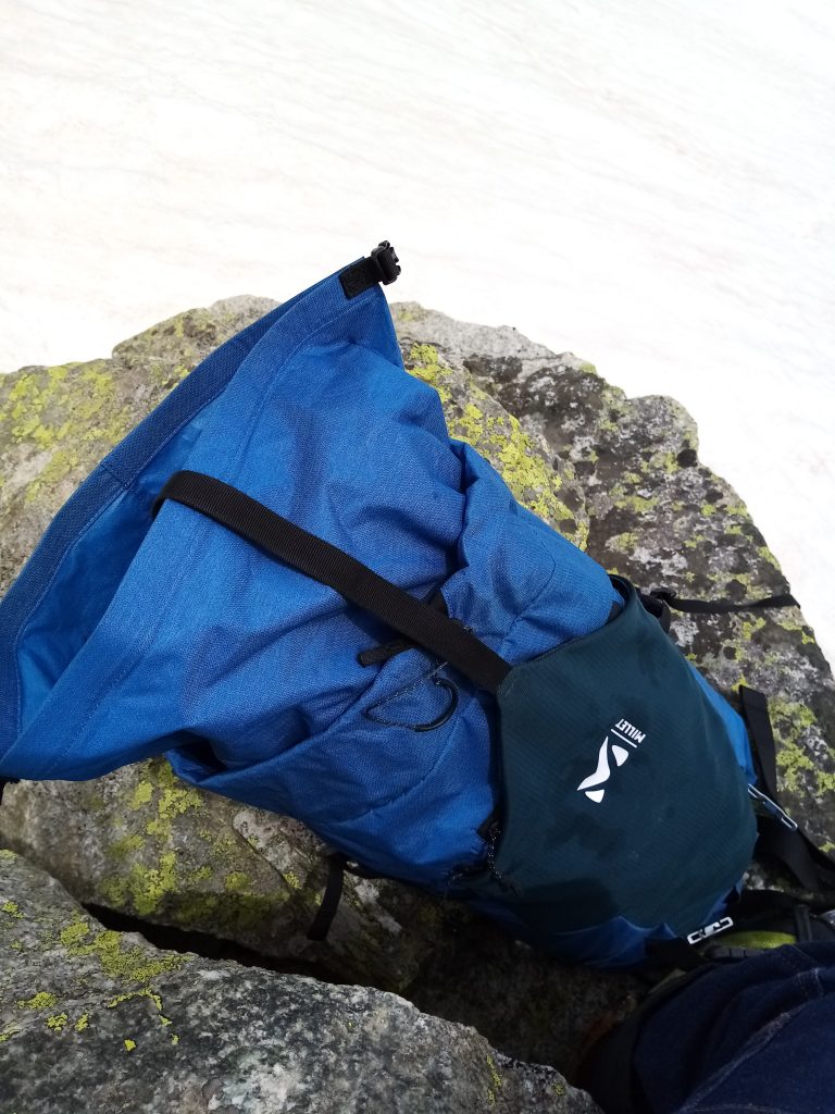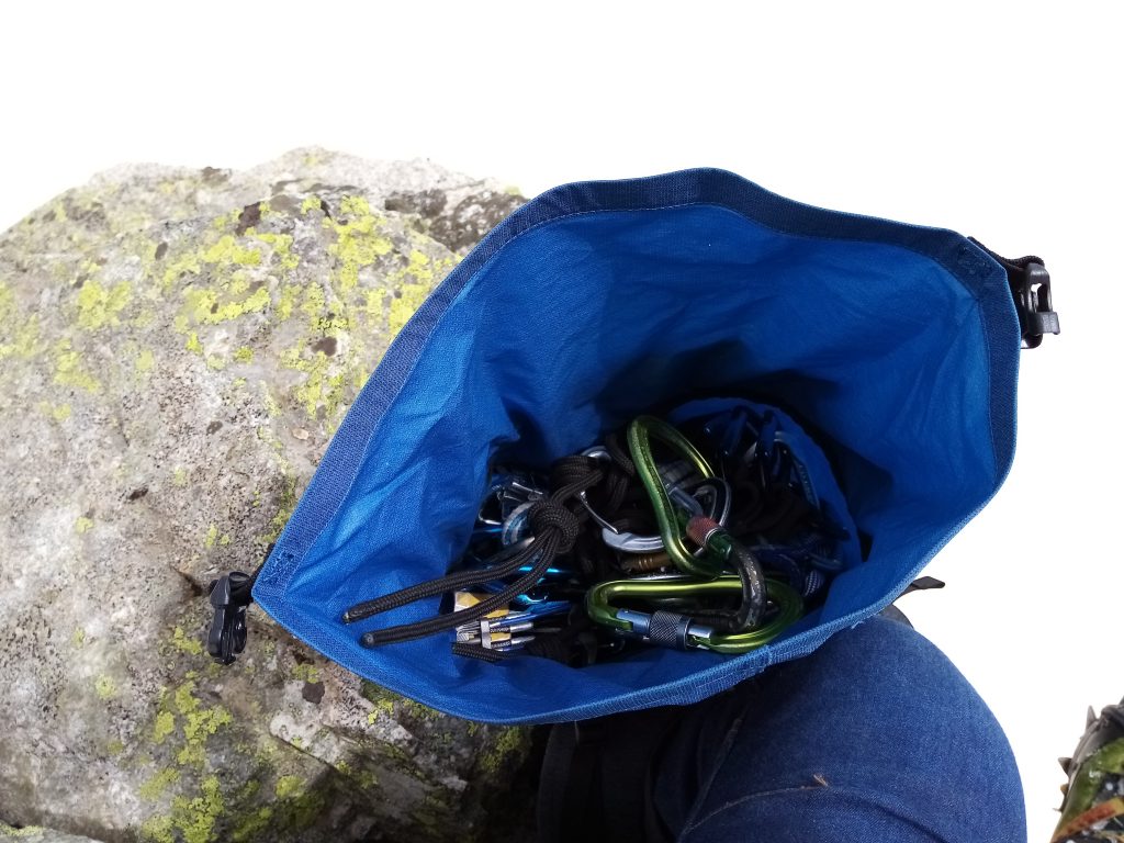Lo zaino non ha cappuccio e dispone di un singolo accesso ampio e comodo. Il sistema di apertura e chiusura principale è un cordino con bloccante di facile regolazione. All’interno una seconda chiusura avviene arrotolando il tessuto dello zaino e bloccando il tutto con due clip. In questo modo si ottiene una chiusura rapida e a prova di pioggia, che evita l’uso di cerniere.