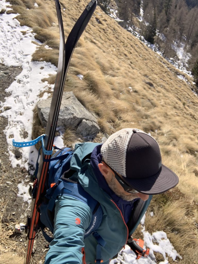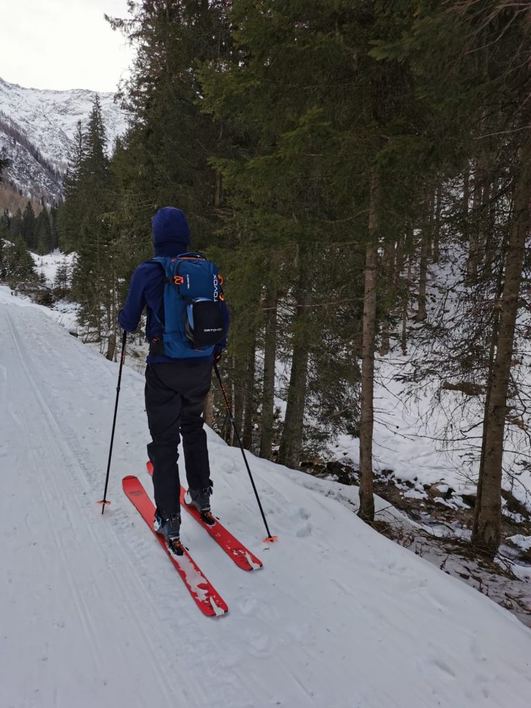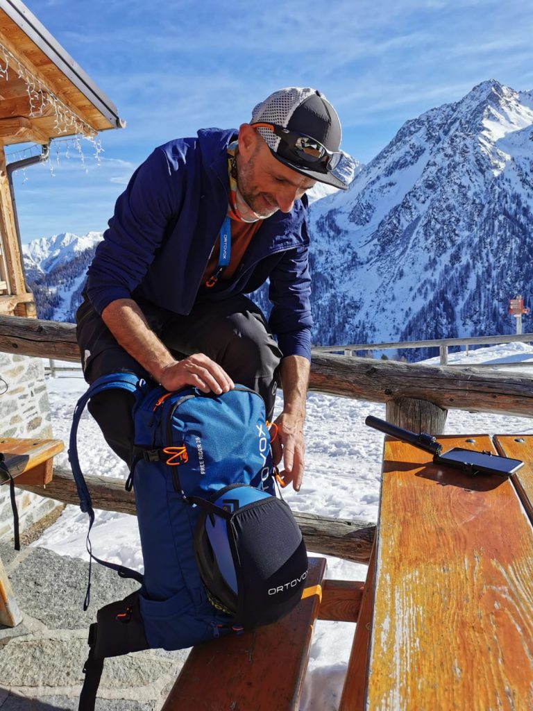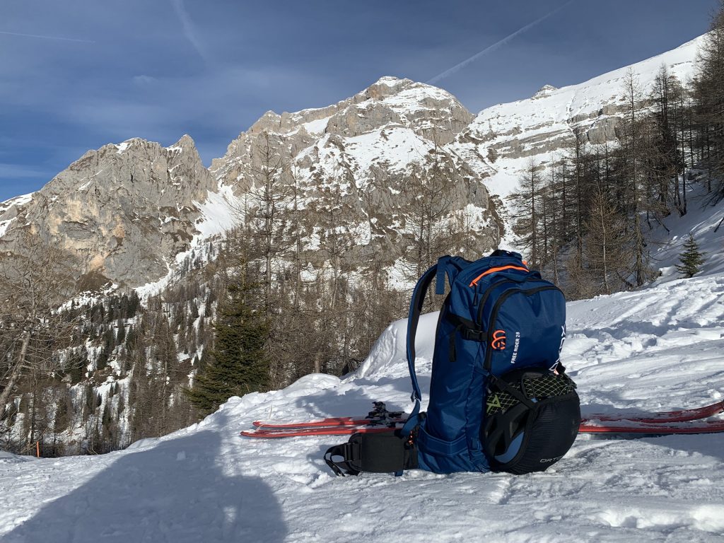 Lo zaino è stato provato in molteplici situazioni dallo scialpinismo classico, al freeride usufruendo degli impianti di risalita. Compatto ed ergonomico è risultato comodo sia in salita sia in discesa grazie anche ai vari sistemi di regolazione sullo zaino, dove cinghie integrate sui lati e sul fascione permettono di ripiegare lo zaino sulla schiena e stabilizzare perfettamente il carico, scaricando omogeneamente sul bacino. L’apertura sullo schienale che consente l’accesso veloce al vano principale è estremamente comoda per riporre in modo ordinato e preciso il materiale, specie quando abbiamo usato i ramponi, imbrago corda e qualche moschettone. Esternamente una tasca dedicata all’attrezzatura di sicurezza (Pala e Sonda) è abbastanza spaziosa per contenere anche un prontosoccorso e un kit di riparazioni di emergenza. All’interno della medesima una piccola tasca con zip consente di riporre chiavi dell’auto e documenti. L’accesso al vano principale può avvenire anche da una tasca a zip posta vicino a quella di sicurezza per infilare velocemente un capo di abbigliamento che ci siamo tolti. Sempre nella parte superiore dello zaino troviamo due tasche munite di zip, una vuota per riporre occhiali da sole e/o maschera da sci, mentre l’altra contiene il lacciolo per bloccare gli sci quando si mettono in spalla nella versione centrale (vedi foto). Due porta sci, sia laterale che dorsale per modulare al meglio il trasporto si uniscono al pratico portacasco integrato in una piccola taschina sul fondo esterno dello zaino, contraddistinta dal logo Ortovox che fa anche da porta piccozza. Infine ma non da meno colori sgargianti e bei abbinamenti cromatici.