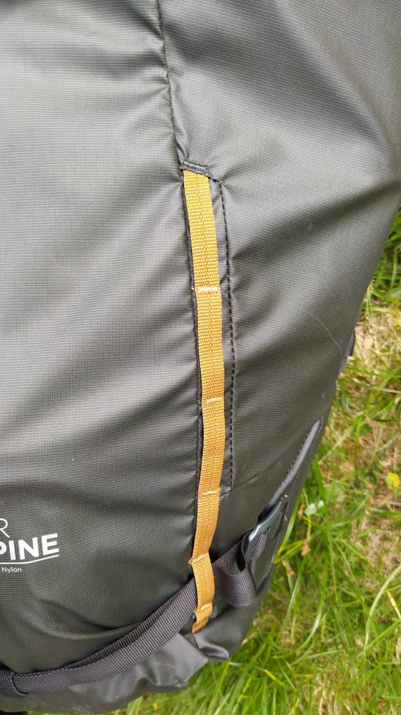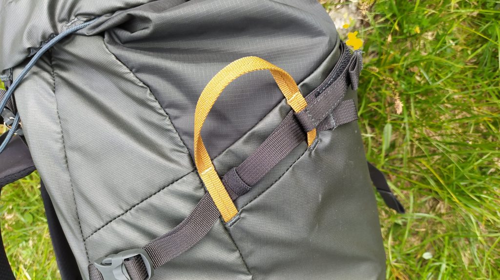 Grazie alla lunga cerniera laterale l’accesso allo zaino è facilitato, senza doverlo svuotare. Anche due piccozze trovano spazio e una cinghia superiore si rivela utile per fissare la corda (o una giacca o un capo ingombrante). Presente infine anche una tasca interna per chi preferisce la sacca idrica alla borraccia.