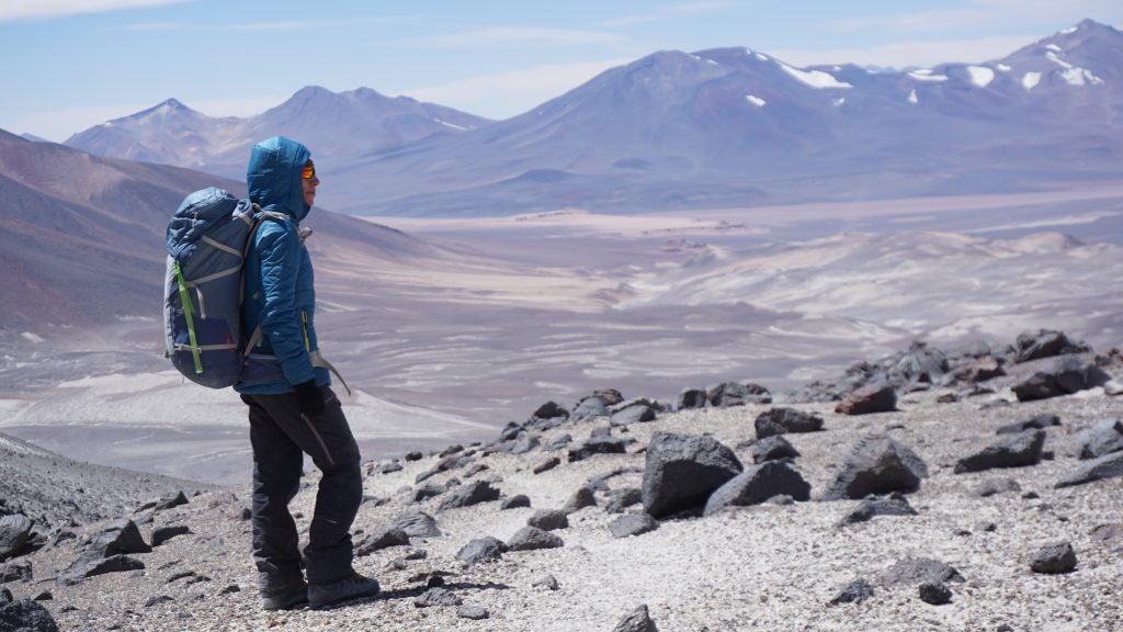 Abbiamo usato questo zaino per una salita di acclimatamento e per la parte finale della spedizione, durata cinque giorni, quando abbiamo lasciato le bici al Rifugio Murray a quota 4.500 m circa e proseguito a piedi verso il Campo base Atacama a 5240 m.